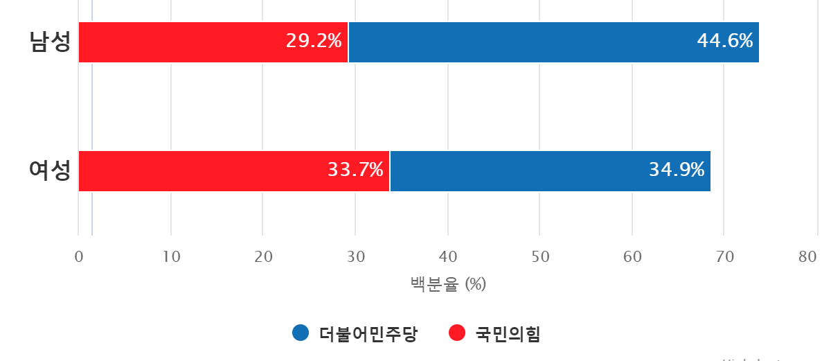 ¼ºº°·Î´Â ³²¼ºÀÌ ¿©¼ºº¸´Ù 10% Æ÷ÀÎÆ® ÀÌ»ó ¹ÎÁÖ´ç¿¡ ºñÈ£°¨ Á¤¼­°¡ ´õ ³ôÀº °ÍÀ¸·Î ³ªÅ¸³µ´Ù.