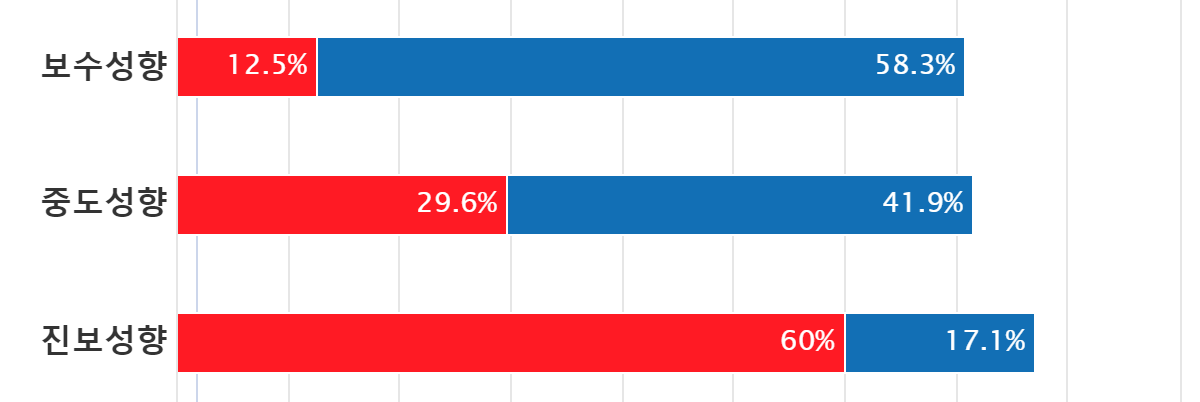 À̳伺Ç⺰·Î´Â º¸¼ö¼ºÇâÀÚ´Â 58.3%, Áßµµ¼ºÇâÀÚ´Â 41.9%¸¦ ¹ÎÁÖ´çÀ» Àý´ë ÁöÁöÇÏÁö¾ÊÀ» Á¤´çÀ¸·Î ²ÅÀº ¹Ý¸é, Áøº¸¼ºÇâÀÚÀÇ 60%´Â ±¹¹ÎÀÇÈûÀ» Àý´ë ÁöÁöÇÏ°í ½ÍÁö ¾ÊÀ» Á¤´çÀ̶ó°í ´äÇß´Ù.
