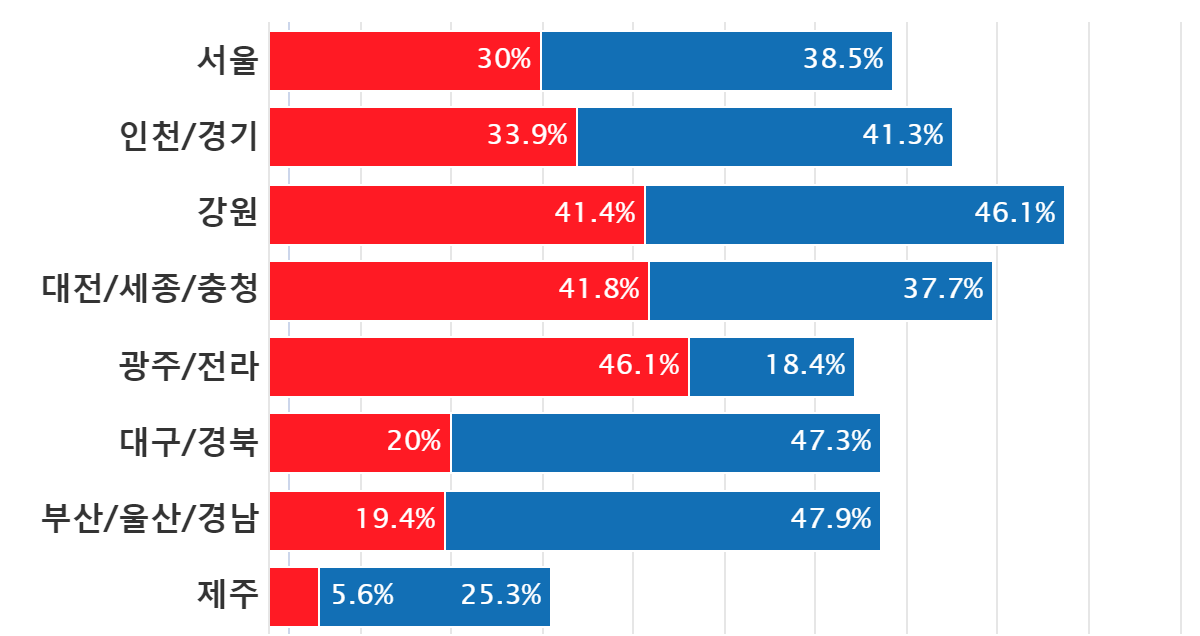 ±Ç¿ªº°·Î´Â ¹ÎÁÖ´çÀ» Àý´ë ÁöÁöÇÏ°í ½ÍÁö ¾ÊÀ» Á¤´çÀ¸·Î ºÎ»ê¡¤¿ï»ê¡¤°æ³²(47.9%), ´ë±¸¡¤°æºÏ(47.3%)·Î ³ô¾ÒÀ¸¸ç,